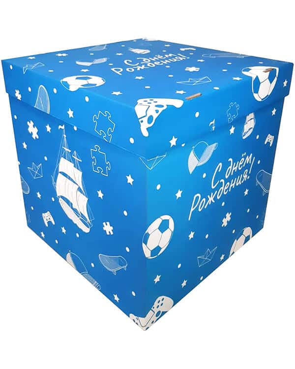 Следует учитывать, что уложить надутые гелием шары получится только в большую коробку. Желательно заказать или купить коробку размерами от 50х50х50 до 70х70х70. Можно выполнить любую надпись на стенках. Если выбирать коробки меньшего размера, то придётся уменьшить количество шаров или их размер. Это повлияет на эффективность взлёта.