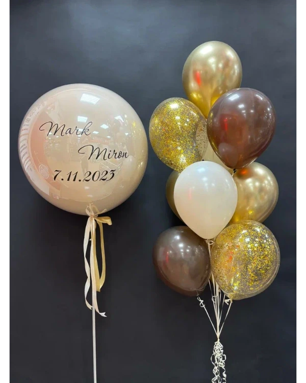 Шар внутри шара, также известный как баблс или «стеклянный» шар, считается одним из самых эффектных решений в мире аэродекора. Конструкция представляет собой прозрачный внешний шар, внутри которого размещается латексный элемент, а пространство между ними часто дополняют конфетти. Особую выразительность такому шару придаёт отражающая поверхность, создающая иллюзию стекла и зеркального сияния.